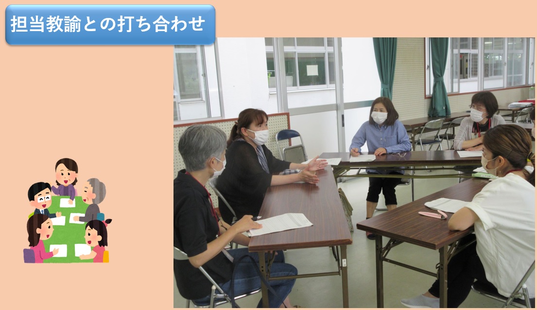 この写真は担当教諭と隊員との打ち合わせをしている写真です。