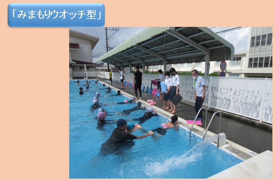 「みまもりウォッチ型」の写真です。見守りにより、直接水中で先生が志度できるので、